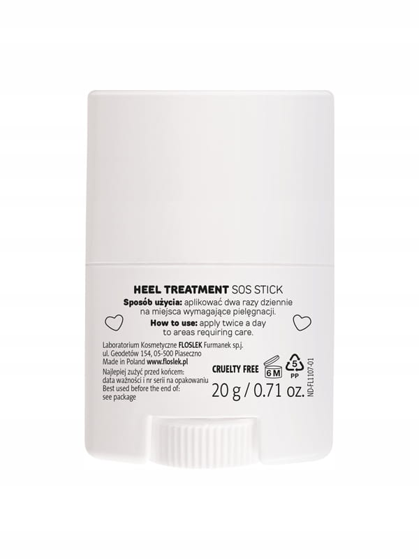 Sztyft do pielęgnacji stóp, Balerina, Sztyft SOS kuracja do pięt, z mocznikiem, z alantoiną, polecany dla diabetyków Doskonały wegański kosmetyk, który zapewnia efekt zabiegu spa dla stóp w domowym zaciszu. Niezwykle bogata formuła przynosi natychmiastową ulgę przesuszonym piętom, na których pojawił się zrogowaciały naskórek oraz pęknięcia. Produkt w sztyfcie umożliwia precyzyjne rozprowadzenie kosmetyku na skórze i dotarcie do trudno dostępnych miejsc.